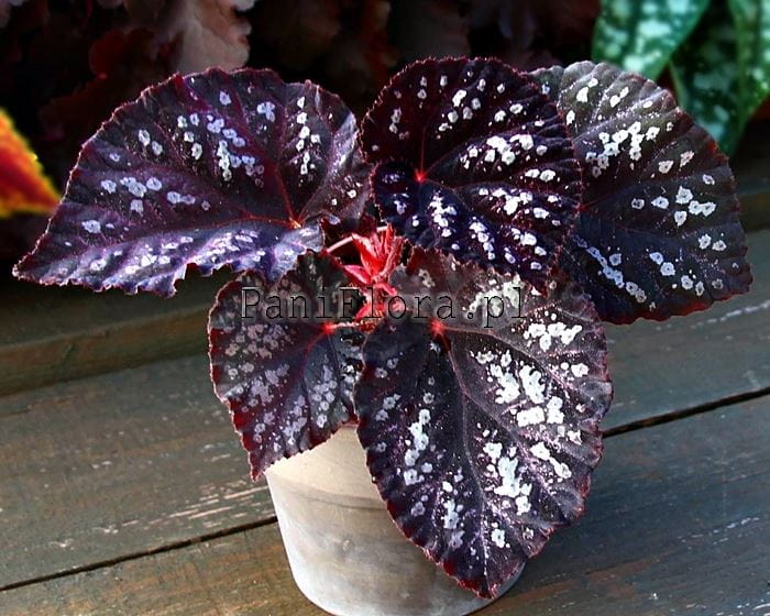 Młode begonie rex nie zawsze mają wybarwione liście tak, jak jest u rośliny
